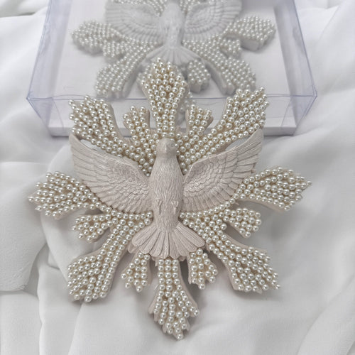 Pin de Lazo con Medalla de la Virgen María en Madre Perla y Bisel Oro 14k