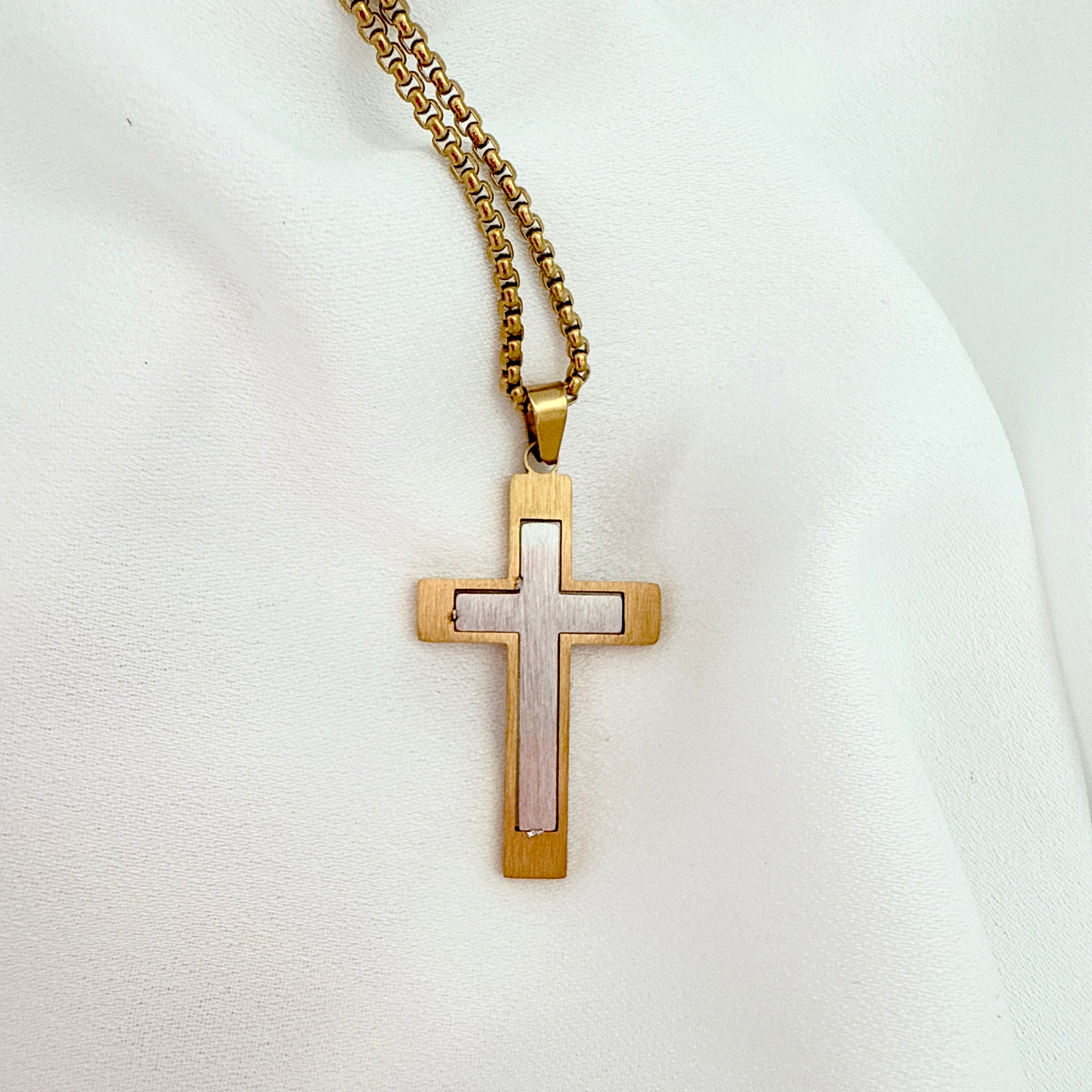 Una pieza atemporal y significativa, este hermoso crucifijo combina detalles en plata esterlina con un elegante baño en oro de 14K.