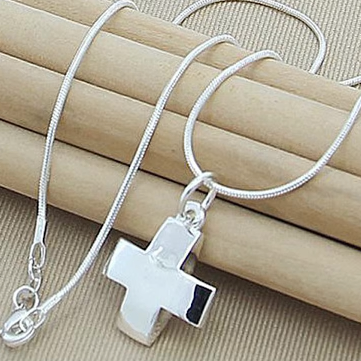 Hermosa cruz cuadrada italiana de plata 925, finamente elaborada, símbolo de fe, protección y amor espiritual. Su diseño elegante y sobrio la convierte en un accesorio perfecto para el uso diario o para ocasiones especiales.