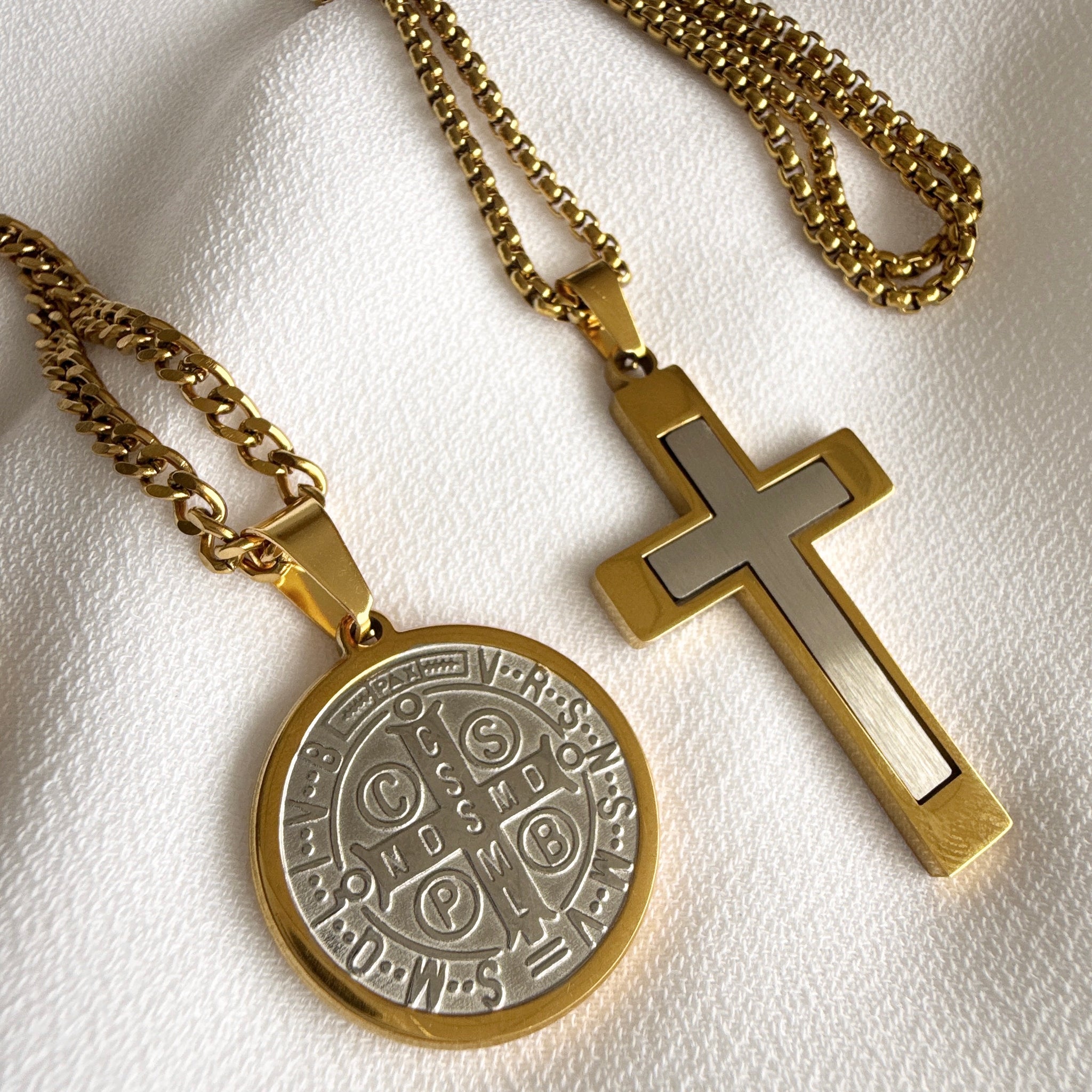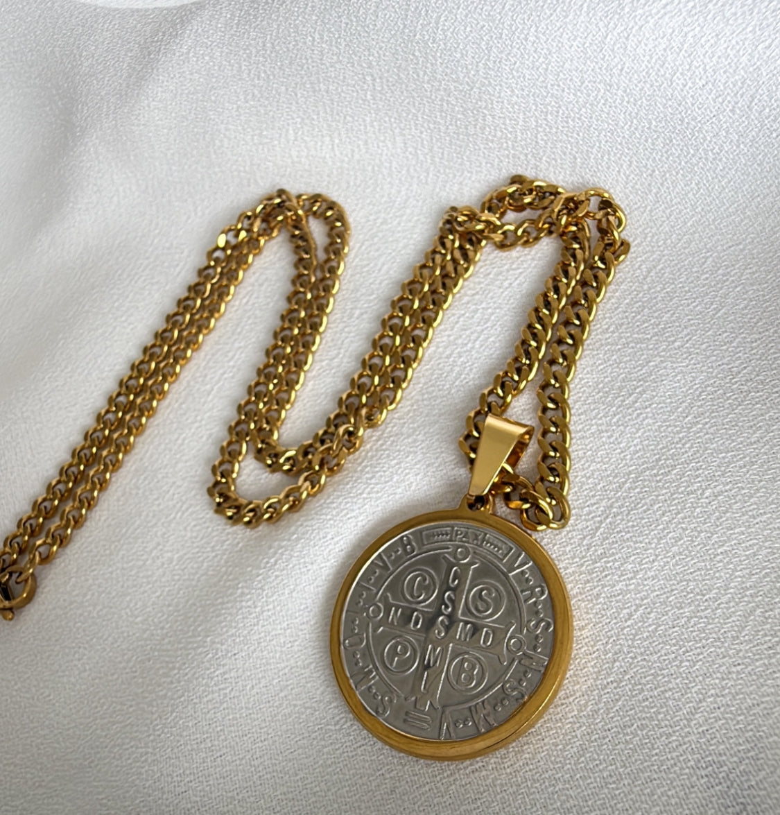 Collar religioso chapado en Oro 18k, con dije de San Benito en Plata 925 y chapado en Oro.