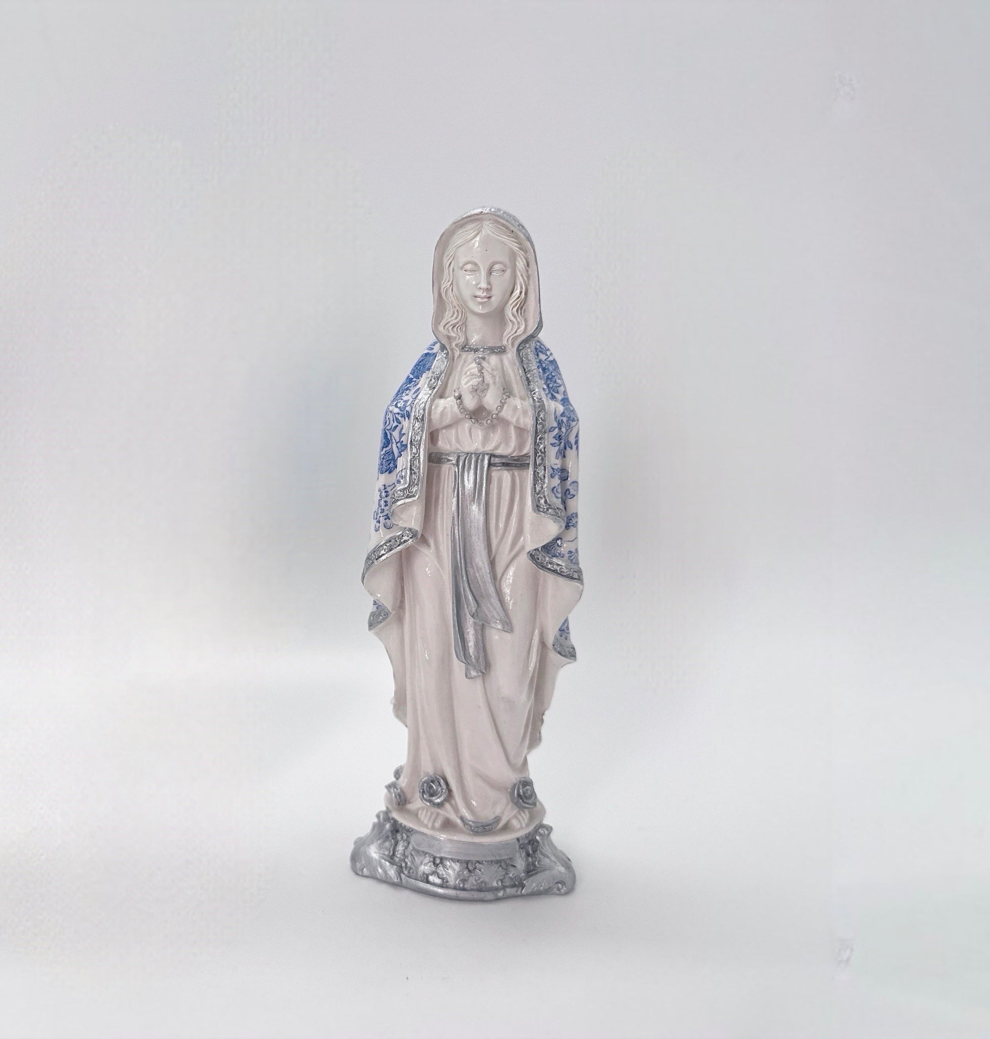 Nuestro hermoso kit de la Virgen María de Lourdes ha sido cuidadosamente elaborado en resina marfil y pintado a mano con técnicas artísticas que realzan cada detalle, convirtiéndola en una pieza única, llena de fe, amor y devoción.