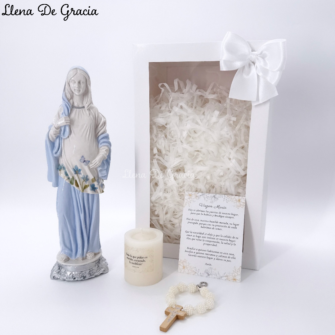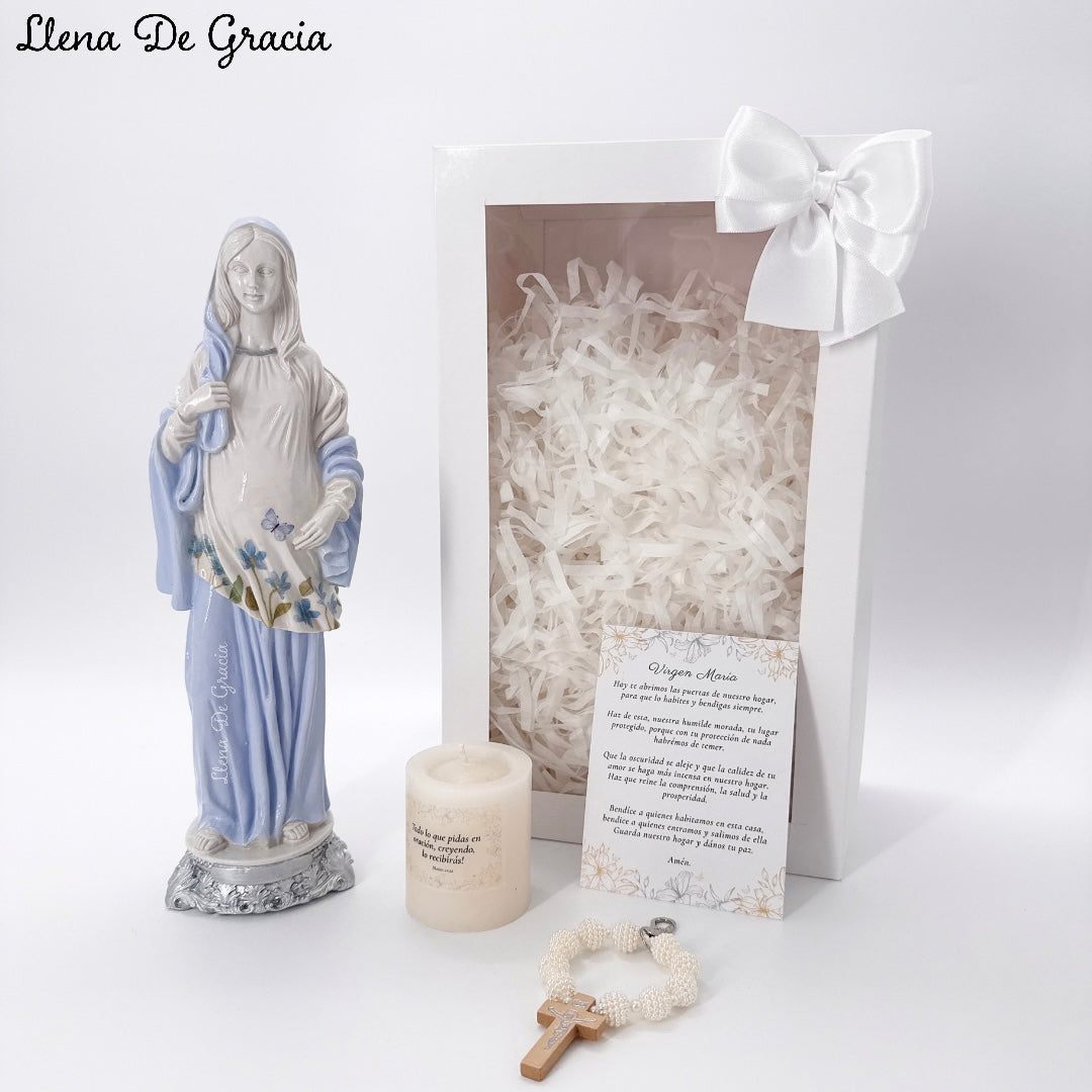 Virgen María en Resina Marfil – Kit de Regalo Religioso