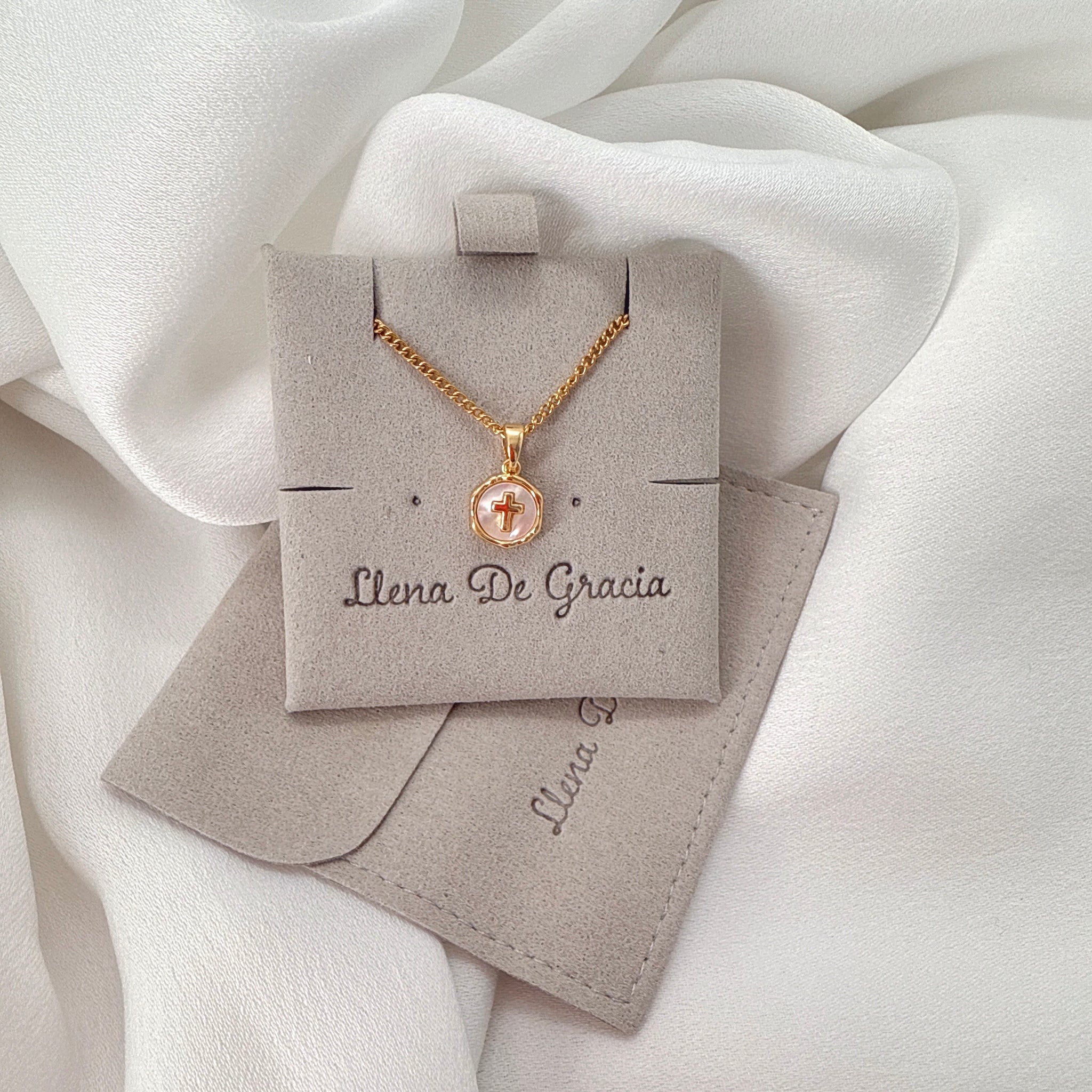 Hermosa cadena con dije pequeño de cruz sobre base circular, chapado en oro 14K. Su diseño discreto, elegante y atemporal la convierte en el accesorio perfecto para bebés, niños o adultos, ideal para regalar en ocasiones especiales como bautizos, primeras comuniones, confirmaciones o cumpleaños.