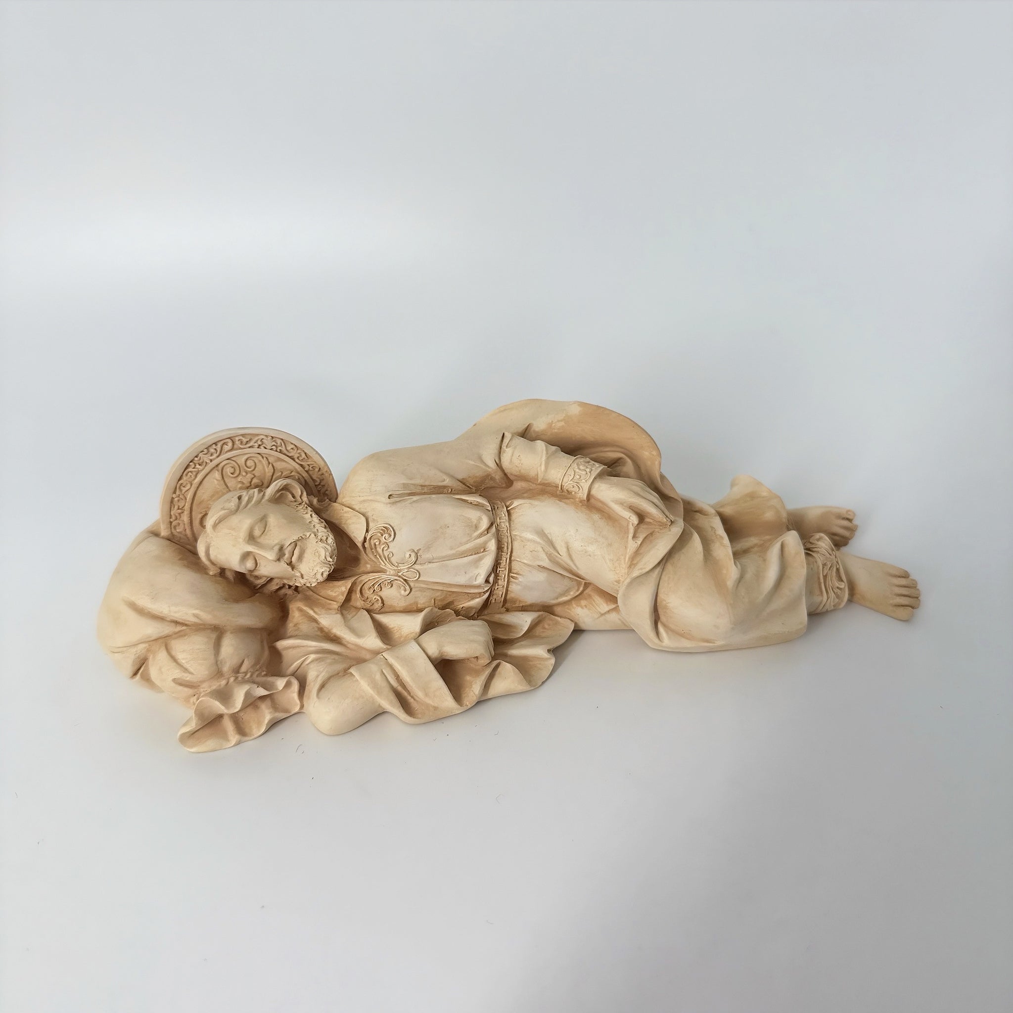 ✨San Jose dormido de 22 cms de largo, elaborado en resina marfil.