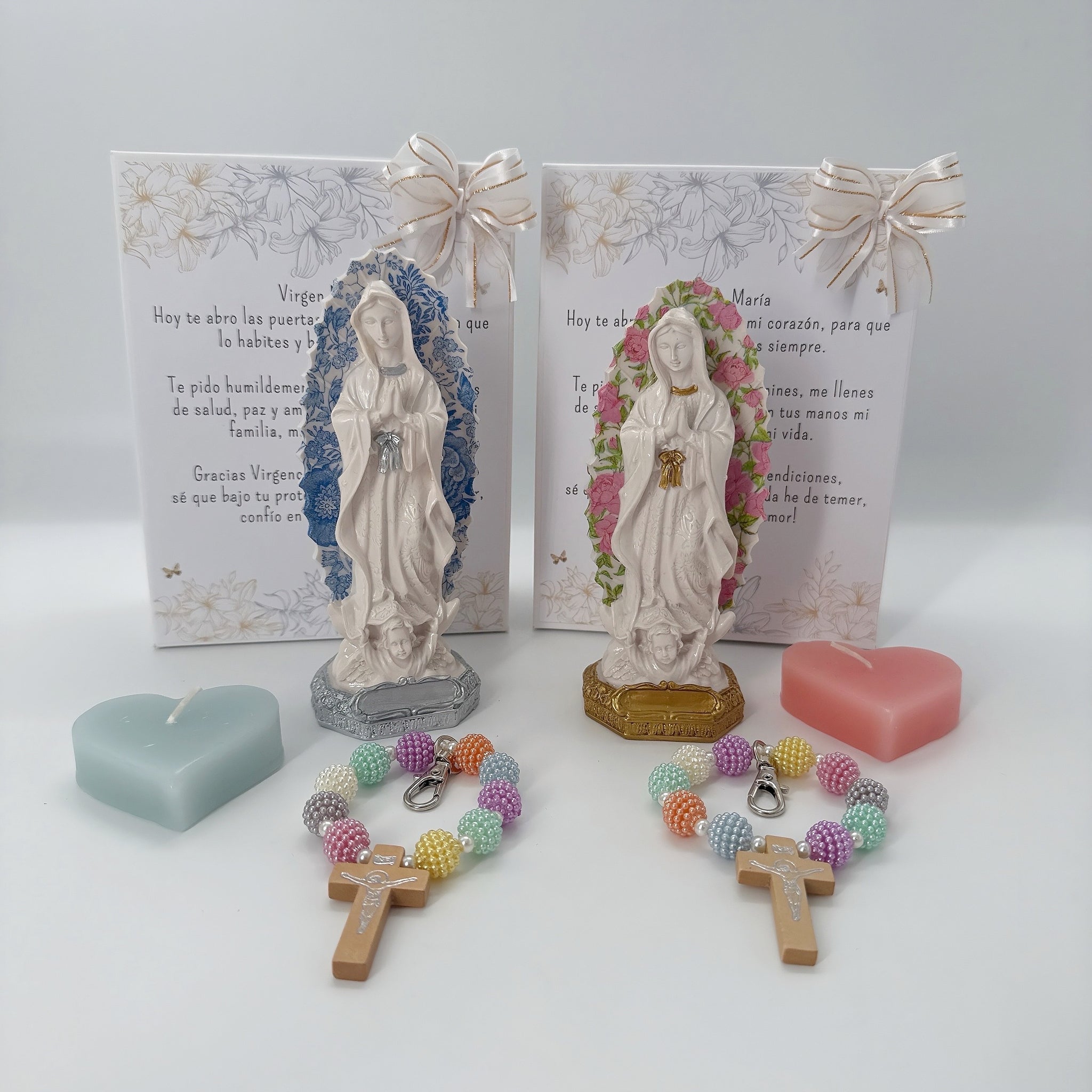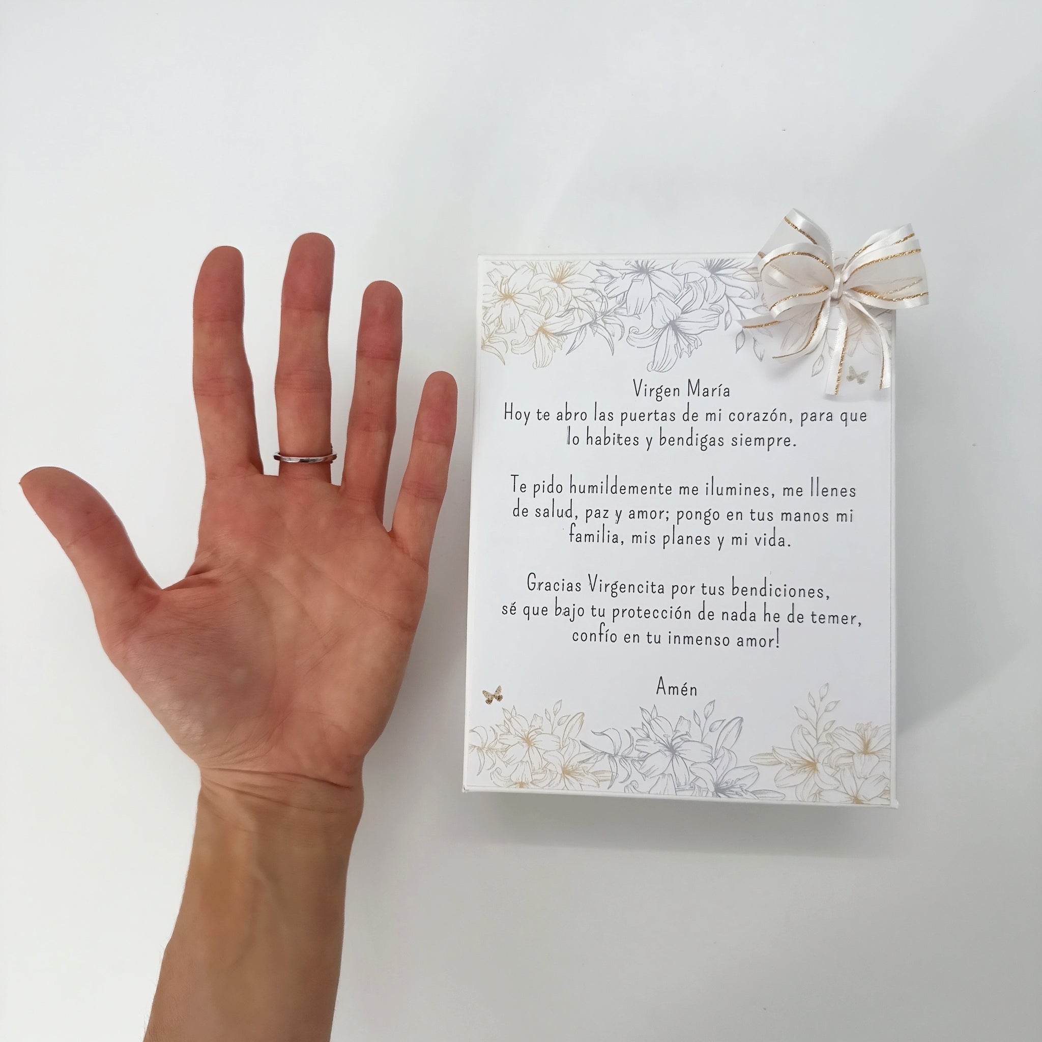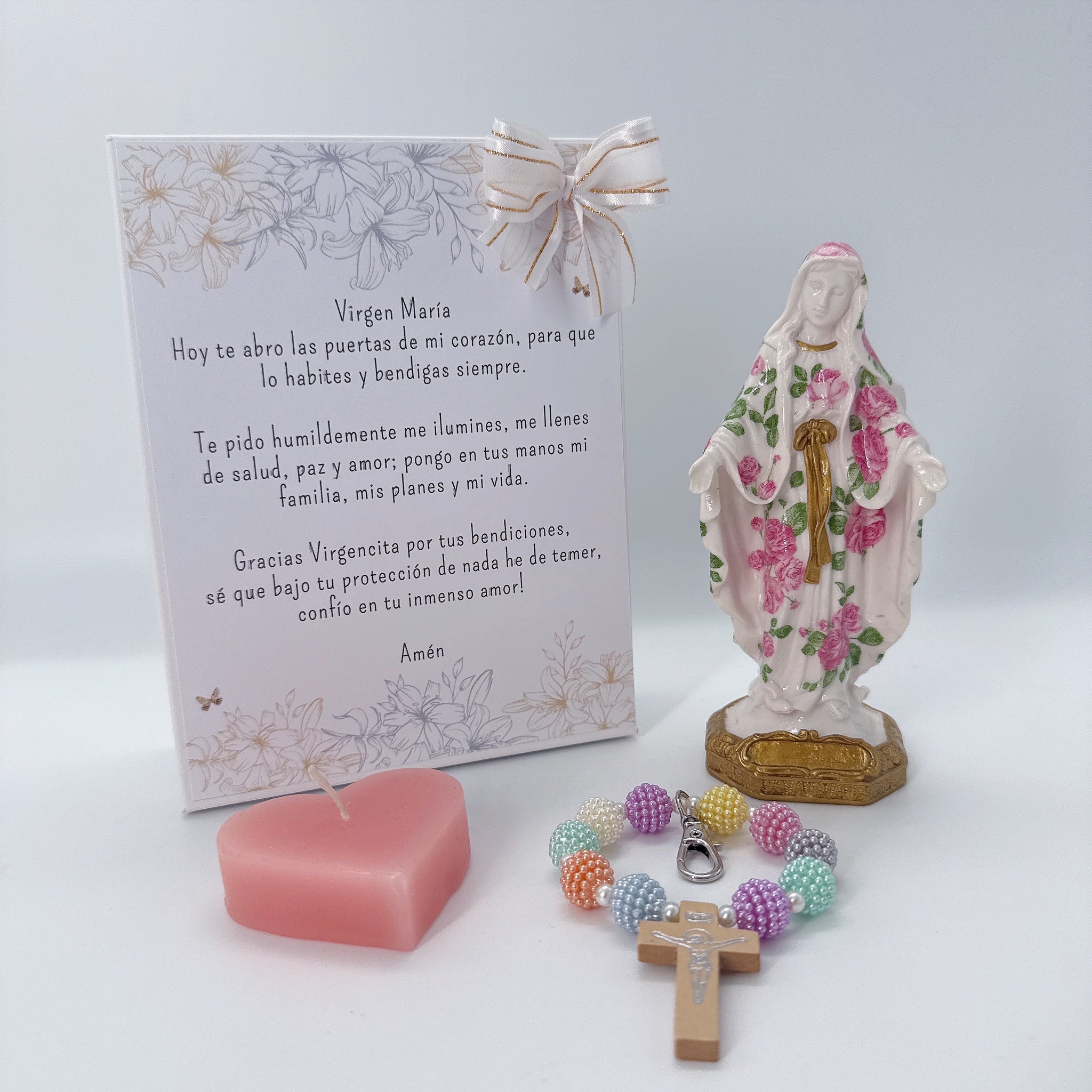 • Cajita de regalo con oración a la Virgencita y lazo decorativo.