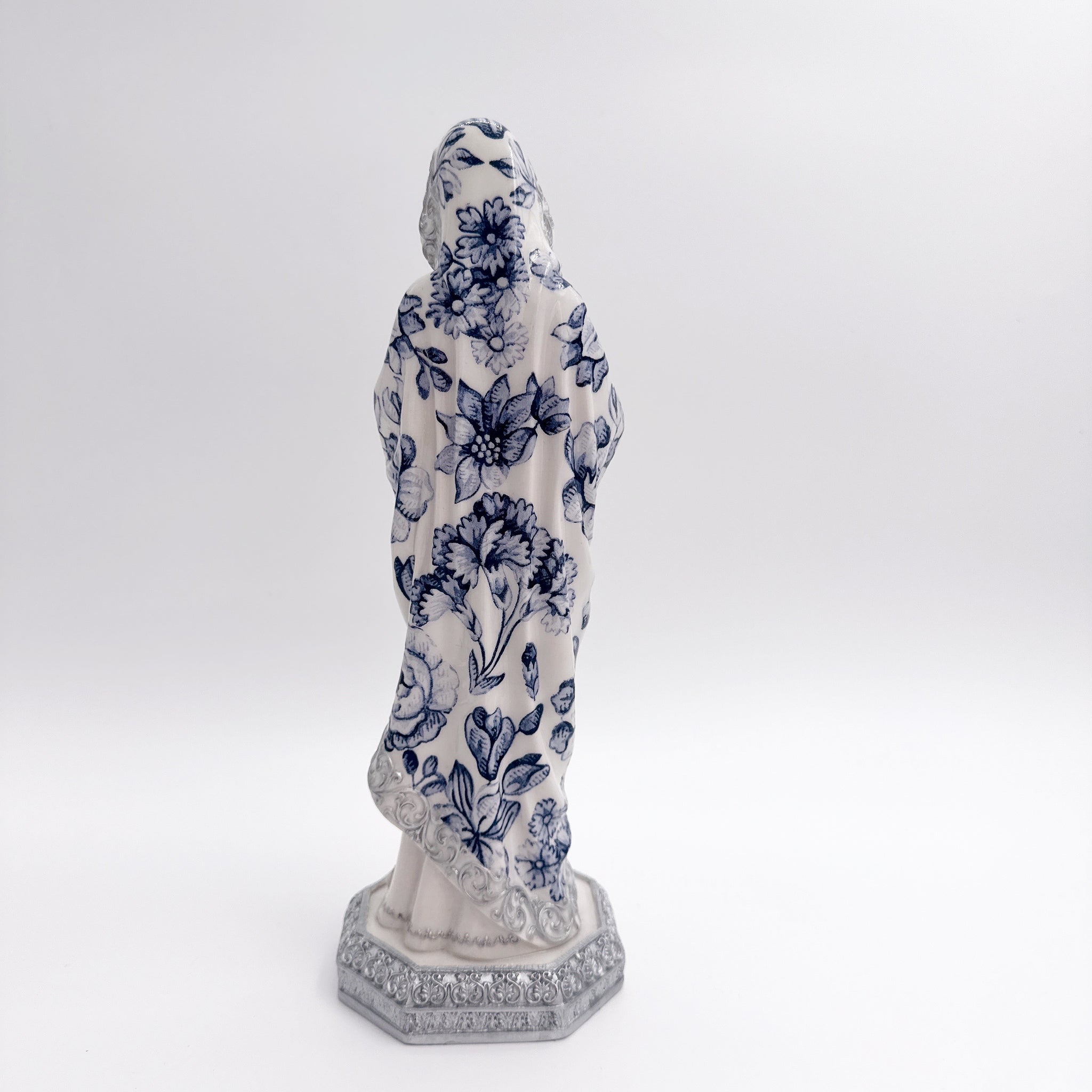 Hermosa figura de la Virgen María Dolorsa, elaborada en resina marfil y pintada a mano utilizando diversas técnicas de arte.