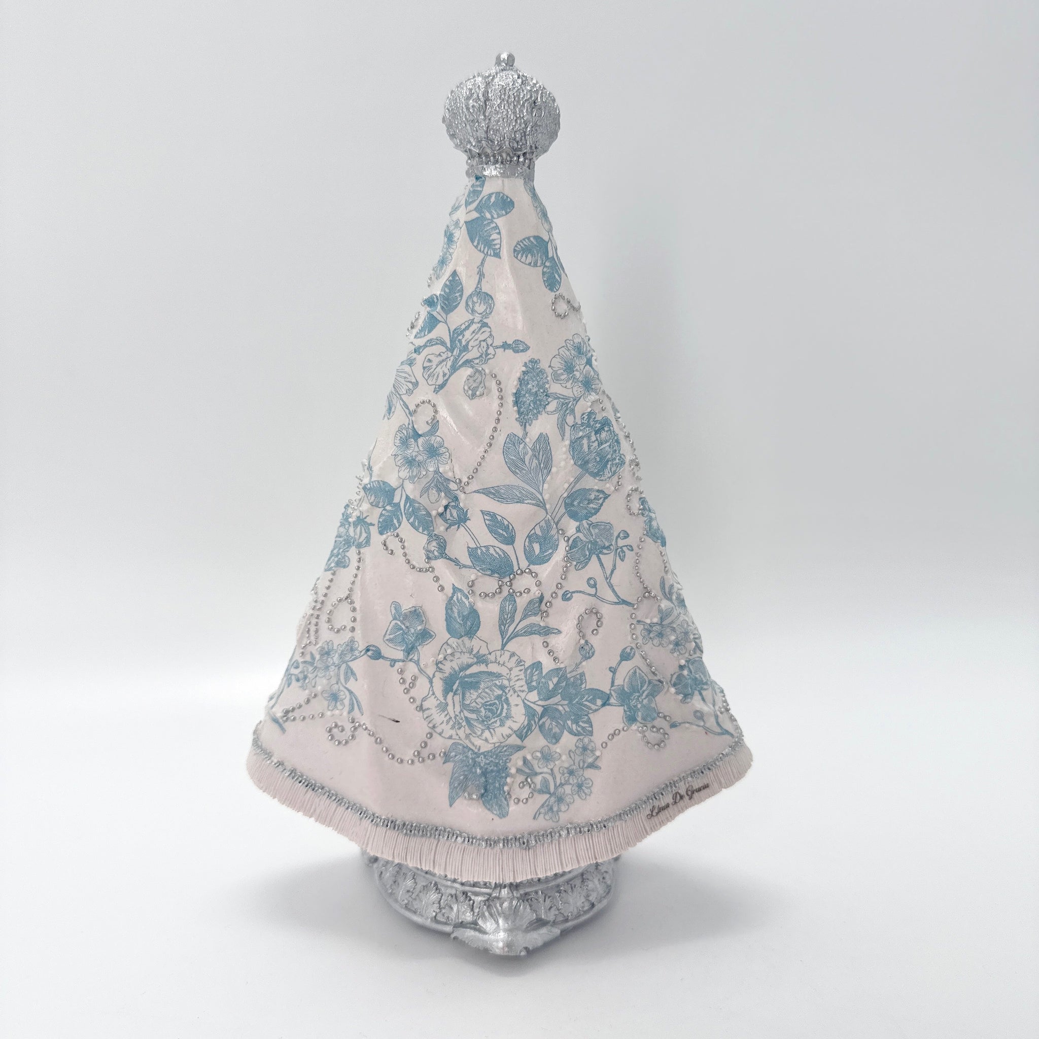 Este hermoso kit de regalo está dedicado a la Virgen María, inspirado en la virgen  aparecida: advocación  mariana brasilera.  Tiene 22.5  cms de altura y 16 cms de ancho y ha sido cuidadosamente elaborada en resina marfil  con detalles delicadamente trabajados.